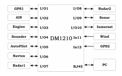 The DM1210N is a 12 input, 10 output, RJ45 Network interface data multiplexer designed to assist